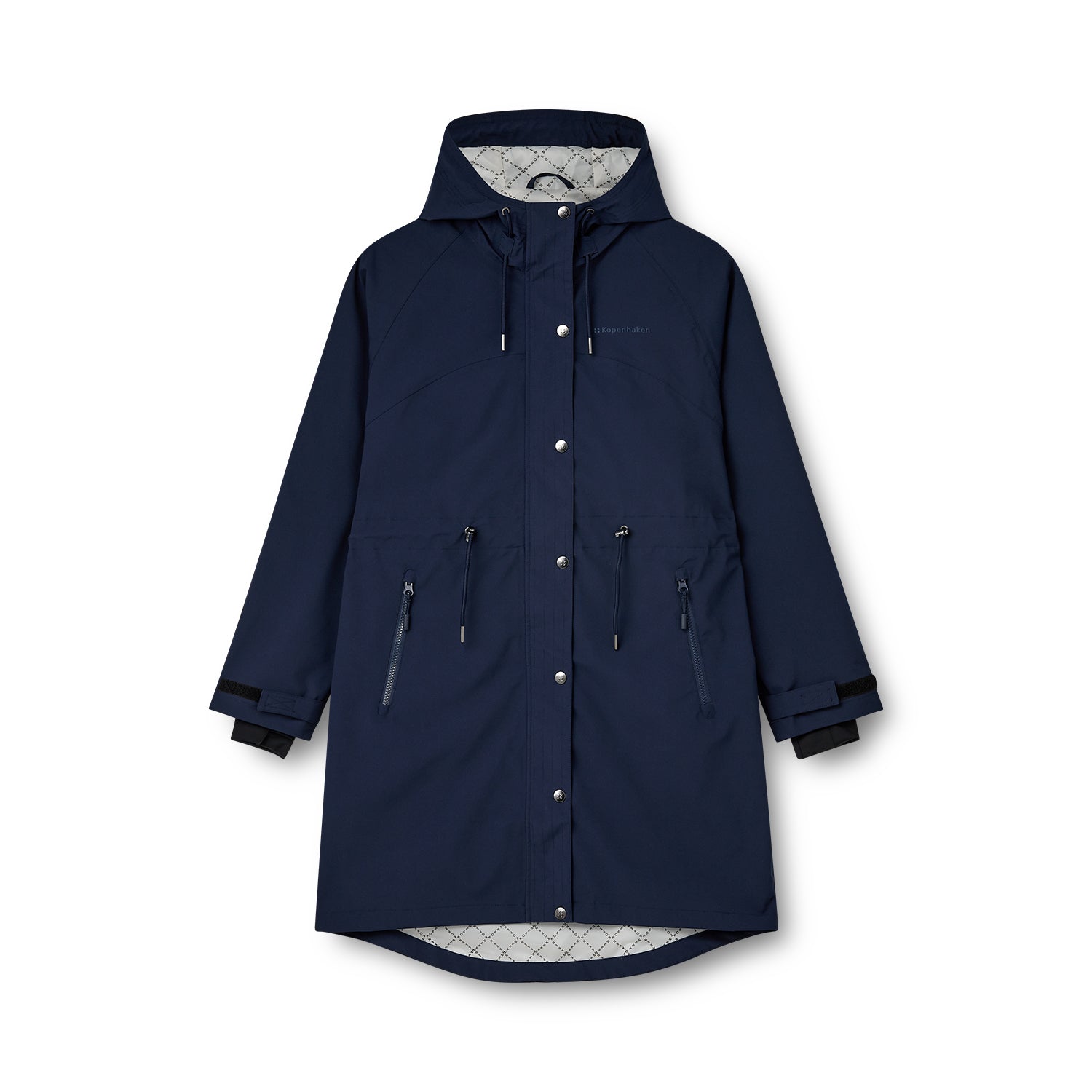 Kopenhaken vind og vandtæt dame jakke med snoretræk i hætten. Jakken har snøre udvendig i taljen samt to vandtætte lommer.