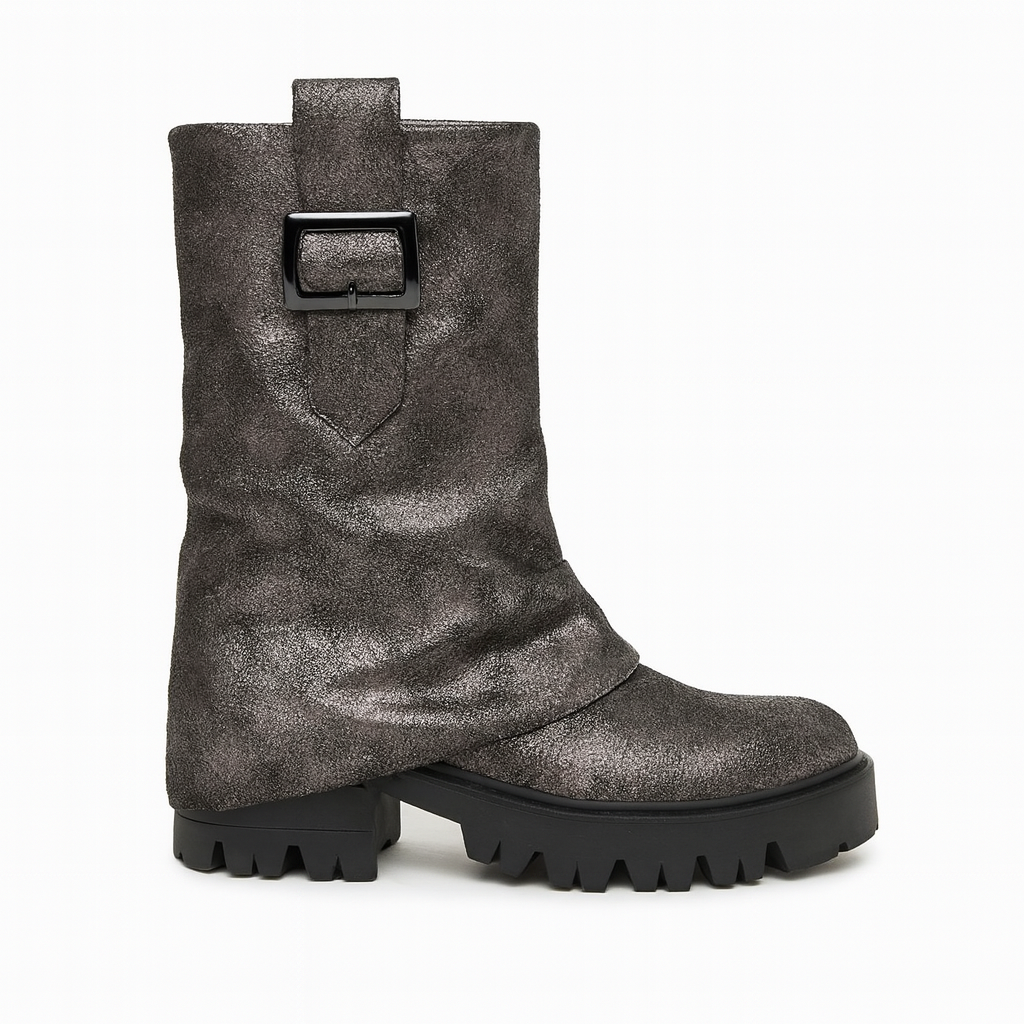 Chunky støvler med fold metallic look