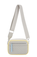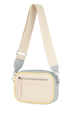 Opgrader din garderobe med denne moderne color block crossbody taske, designet i en stilfuld kombination af lyse nuancer og rene linjer. Taskens quiltede V-mønster på fronten giver et eksklusivt look, mens kontrastdetaljer og den brede, justerbare skulderrem sikrer både komfort og et trendy udtryk.
