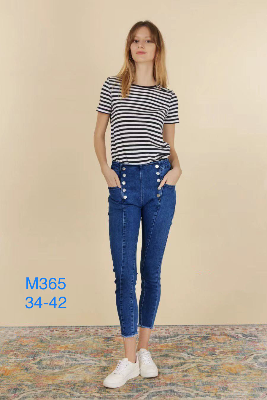 Jeans med syning foran guld knapper
