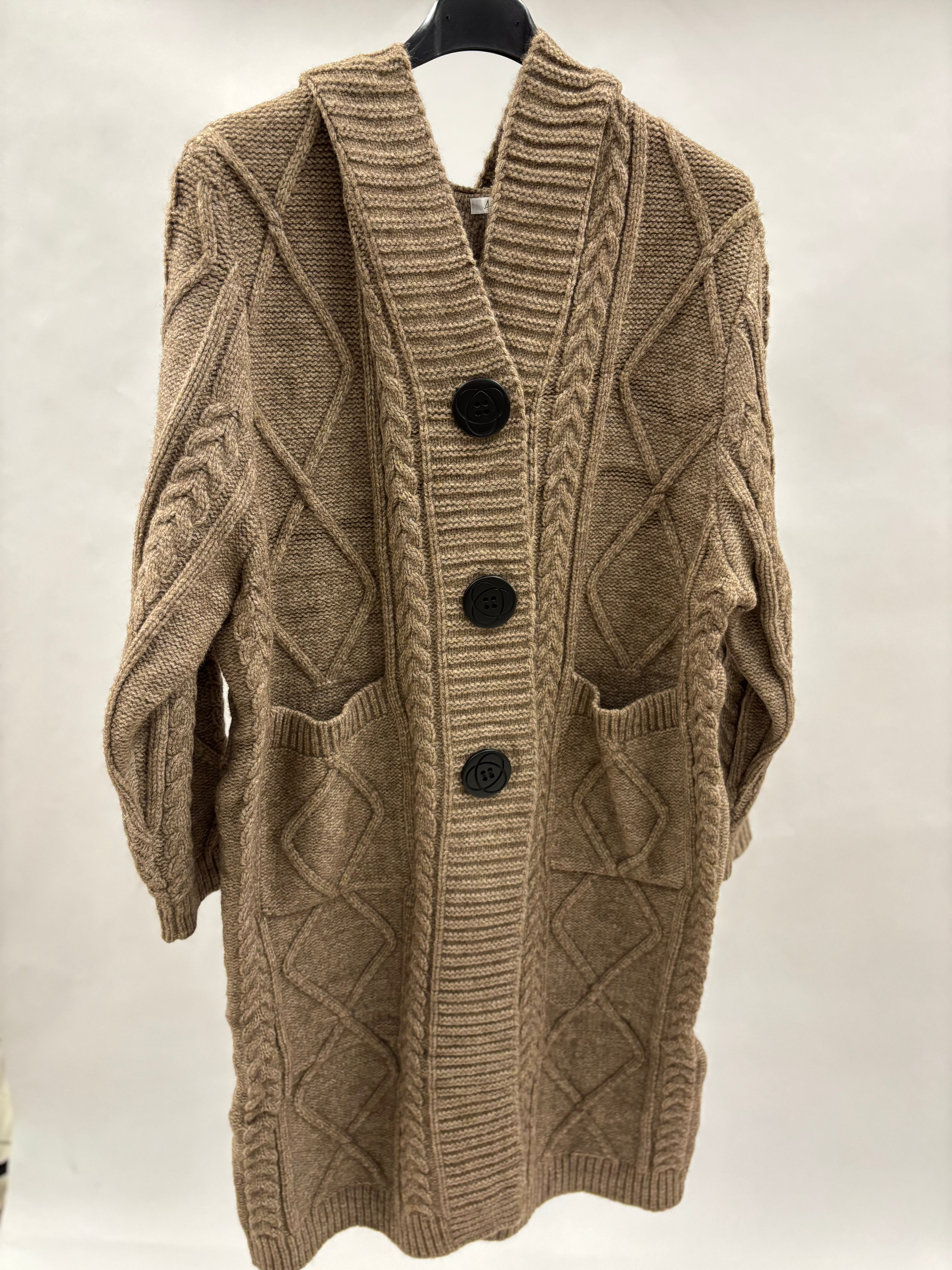 En lækker og funktionel cardigan, der kombinerer både stil og komfort. Med store knapper foran og praktiske striklommer får du et moderne, hyggeligt look, mens den hætte giver et ekstra lag af varme og stil.