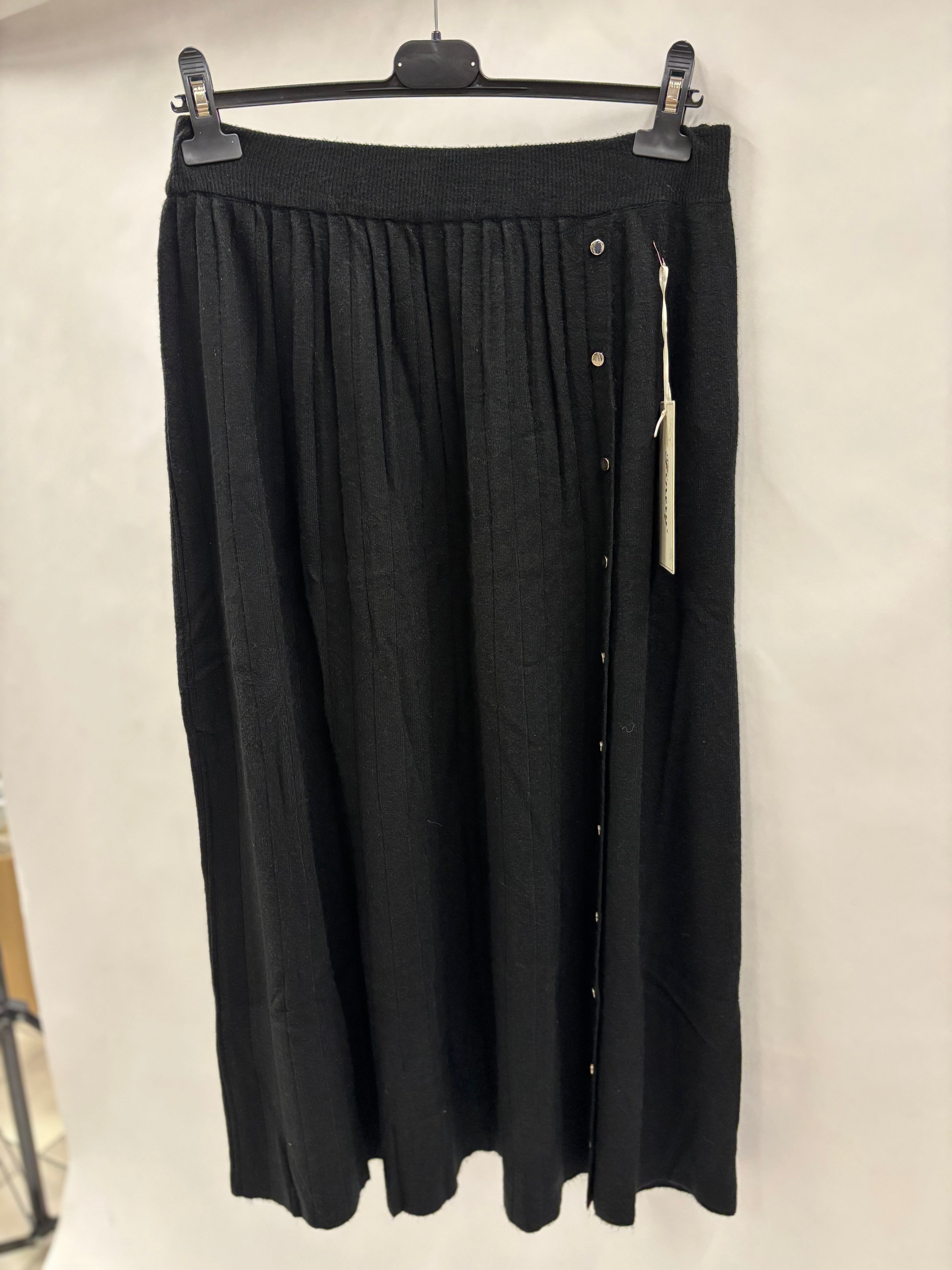 Tilføj et elegant og tidløst touch til din garderobe med denne lange plisserede nederdel med knapper. Den smukke plisséstruktur skaber bevægelse og et feminint udtryk, mens de dekorative knapper foran giver et moderne og stilfuldt twist.