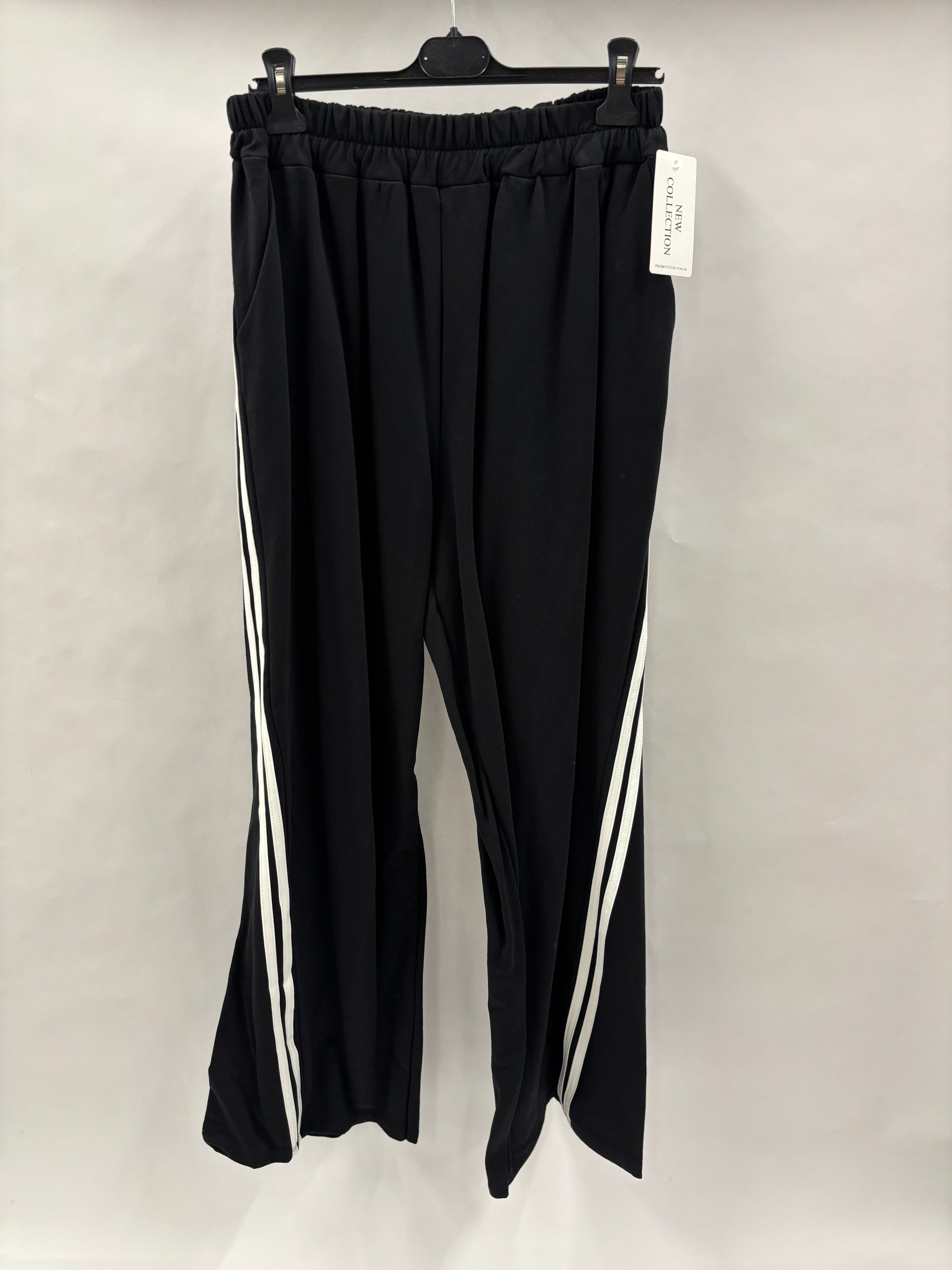 Opgrader din garderobe med disse stilrene og komfortable løse bukser med brede ben, der kombinerer afslappet pasform med et moderne og minimalistisk udtryk. Det ensfarvede design får et elegant løft af de diskrete striber ned langs benene, som giver et slankt og eksklusivt look.