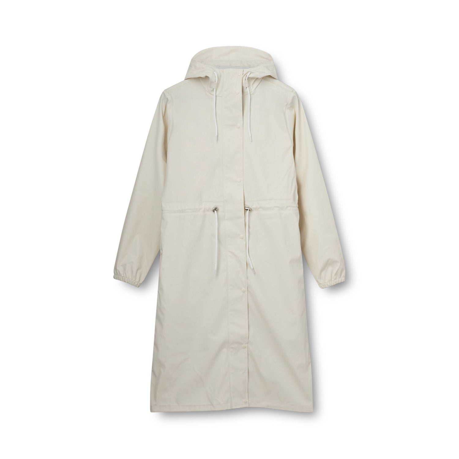 Maja regnjakke har et elegant og praktisk design. Regnjakken er skabt til at imødekomme både stil og funktionalitet, og dens unikke træk gør den til det perfekte valg for regnfulde dage. Den lange silhuet tilbyder maksimal dækning og beskyttelse mod regn, mens snoretræk i taljen giver mulighed for at tilpasse pasformen. Knapper i siden i bunden tilføjer en ekstra dimension til jakkens design, der ikke kun tilføjer et stilfuldt element, men også muliggør justering af ventilation og bevægelsesfrihed.