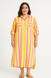 Multifarvet lang stribet skjortekjole - Brystmål 124cm - Bomuld