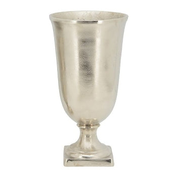 Denne store aluminiumspokal tilfører stil og luksus til enhver indretning – perfekt til både moderne og klassiske hjem. Brug den med blomster, grene eller som et dekorativt statement-piece.