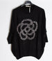 Strikbluse med bling blomst - Brystmål 130cm - Ingen returret - ITNOV24