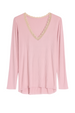 Elegant og tidløs top, designet i et blødt og komfortabelt materiale, der gør den perfekt til både hverdag og mere festlige lejligheder. Den feminine v-hals er smukt indrammet af delikat blonde, som giver et romantisk og sofistikeret udtryk.